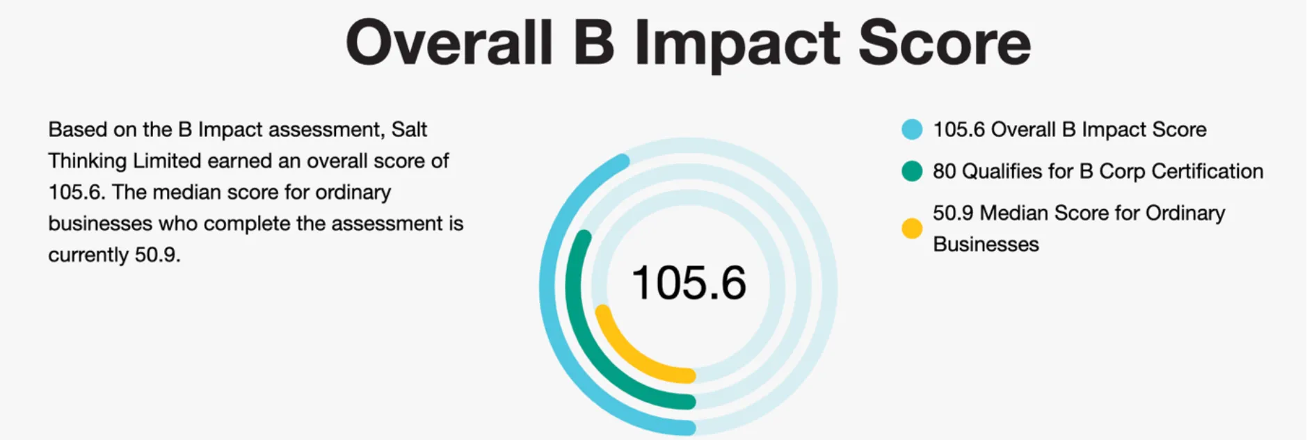 In June 2023, we started our B Corp journey in earnest, and after 14 months of reporting, measuring, assessing, adapting, evidencing and interrogating our company in more ways than you could ever imagine, we became B Corp certified in August 2024. You need a minimum of 80 points to certify, and we achieved 105.6.